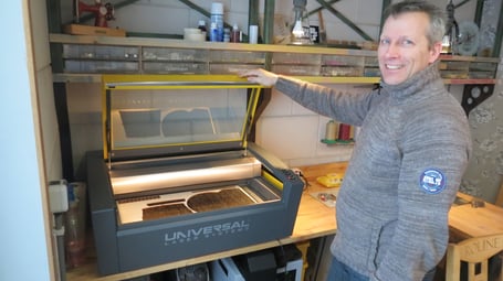 Na een gedegen onderzoek werd gekozen voor de Universal Laser VLS3.60 van Widenhorn. “De machine had de beste kwaliteit voor een mooie prijs en nog belangrijker al mijn producten kon ik ermee maken. Een productrange van mij zijn ronde glazen producten in alle soorten en maten. Die konden allemaal in de machine met één en dezelfde rotatie-as. Het mooie is ook dat ik voor de verschillende maten ook weer zelf mallen kan snijden op de machine.”